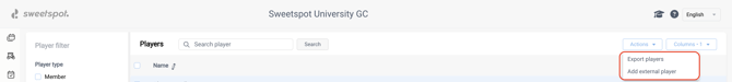 Export all players to a CSV file. Use the "Player filter" to gather the players you wish to export. For instance, to export all players with a "Gold membership," apply the filter first, then proceed with the export. The system will only export the selected players. Upon clicking "Export players," an email will be automatically sent to the logged in user's email address.