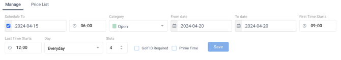 Link to club portal: https://club.sweetspot.io/settings/tee-time-periods/